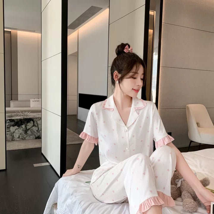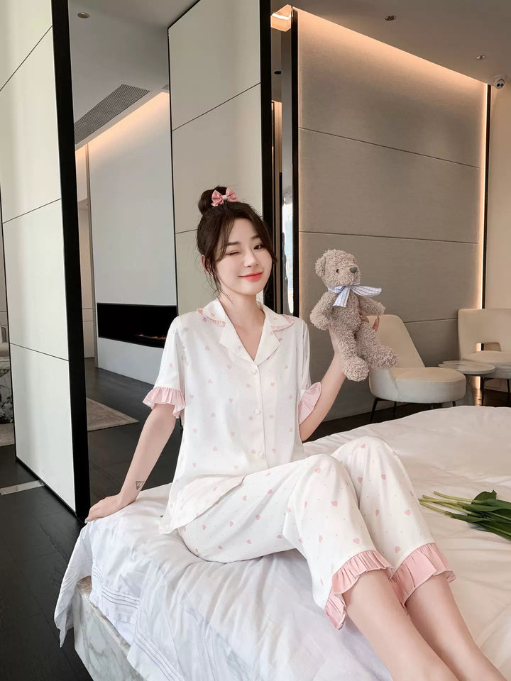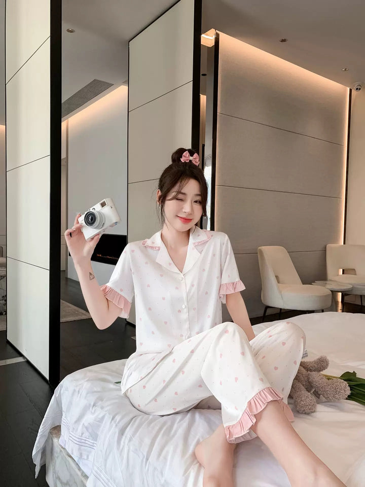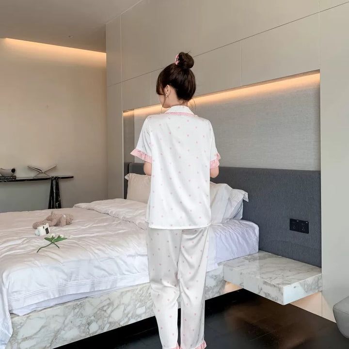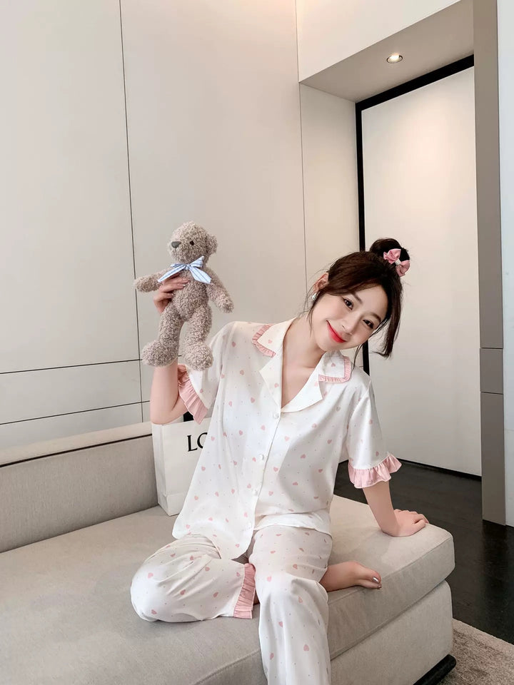 بجامة ساتان حرير بنقشة قلوب