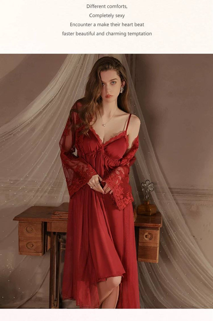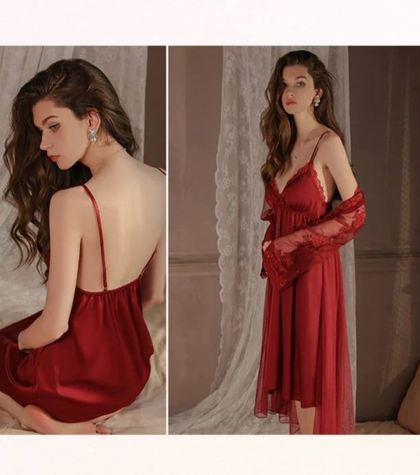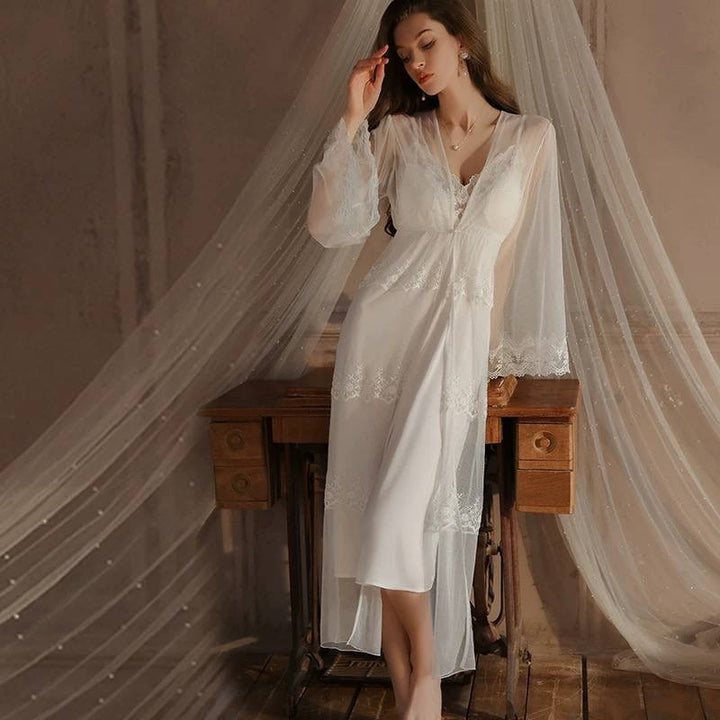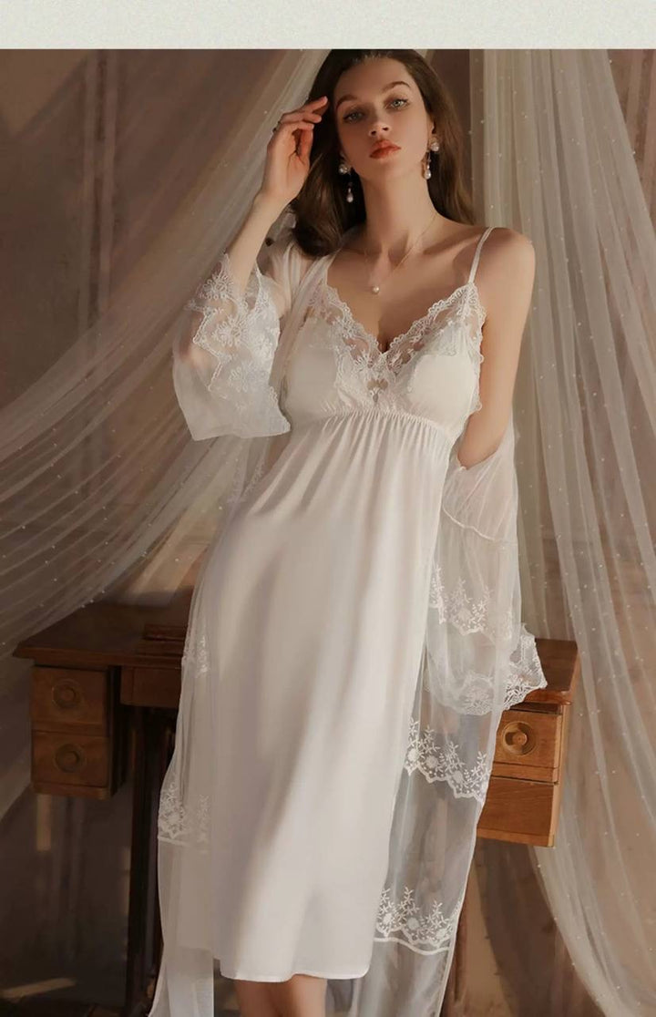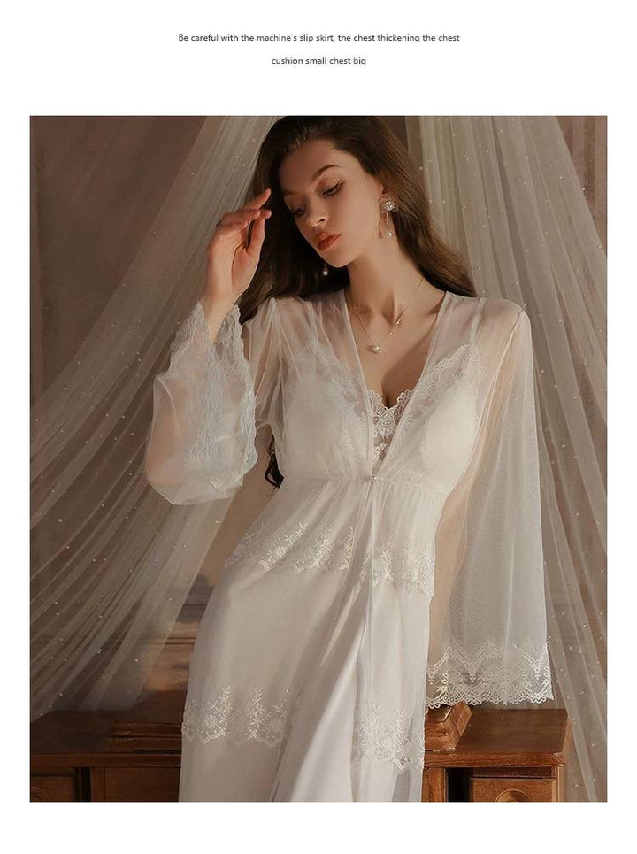 Haneen Veil – طقم قميص ستان وروب تُل دانتيل