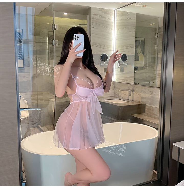 Add a touch of playful allure with this delicate sheer mesh babydoll. Featuring a soft and airy fabric with a sweet satin bow accent at the center. Perfect for a light and comfortable feel with a hint of flirtatious charm.