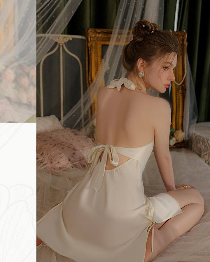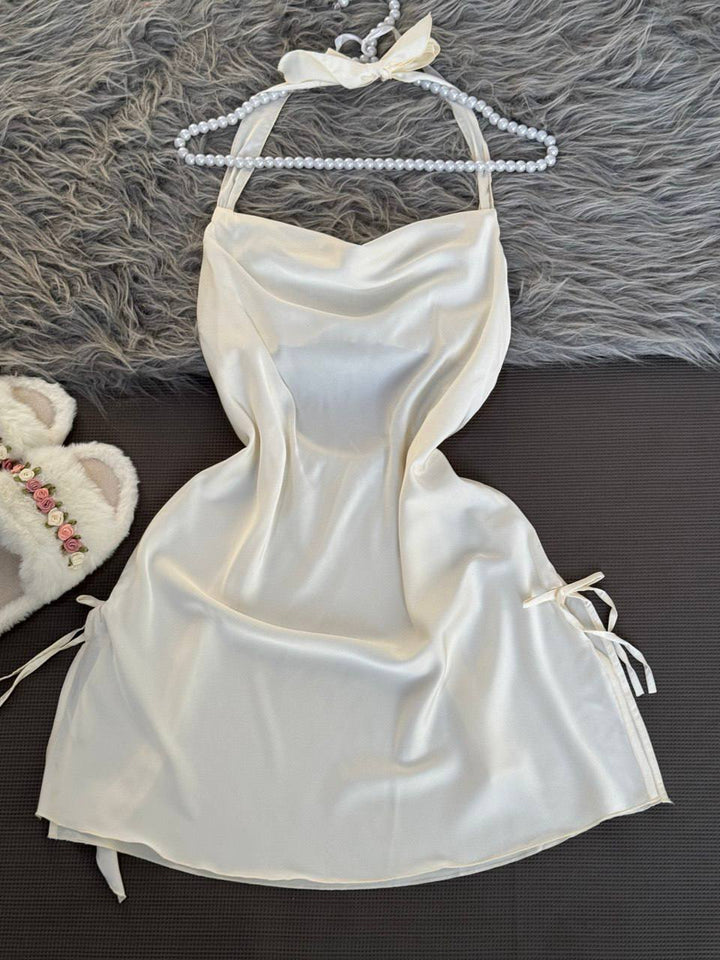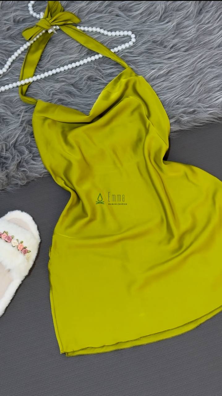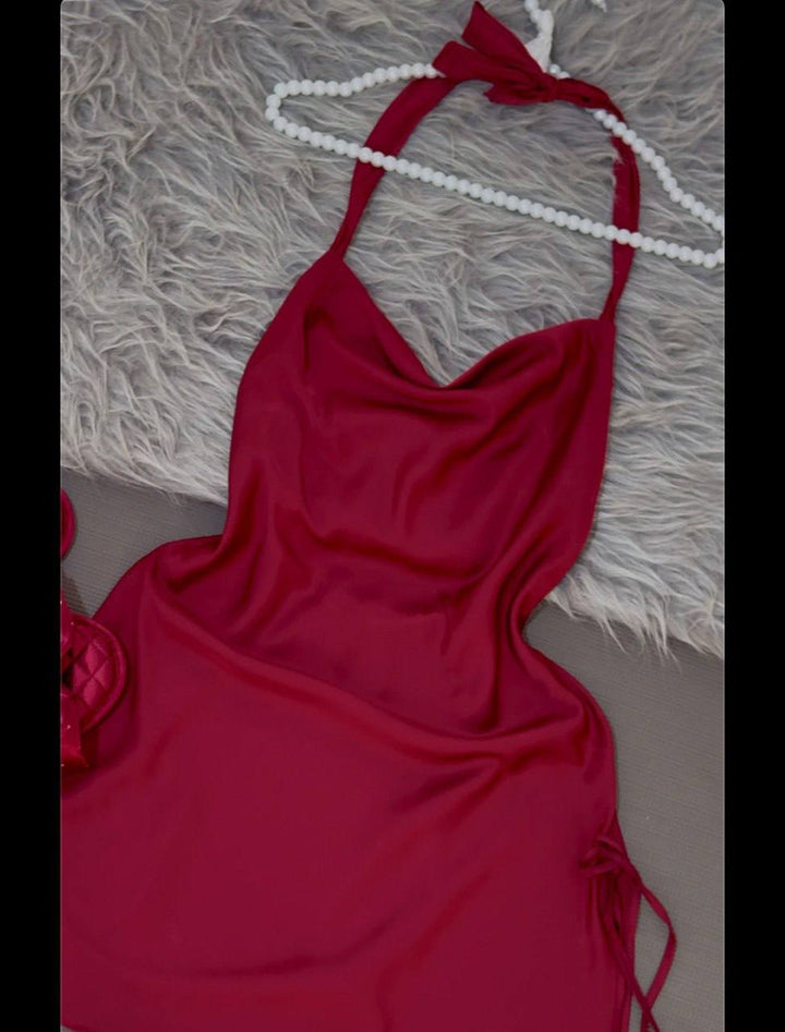 A captivating satin slip dress with a graceful cowl neckline and delicate side tie details. The soft, flowing fabric hugs the body in all the right places.