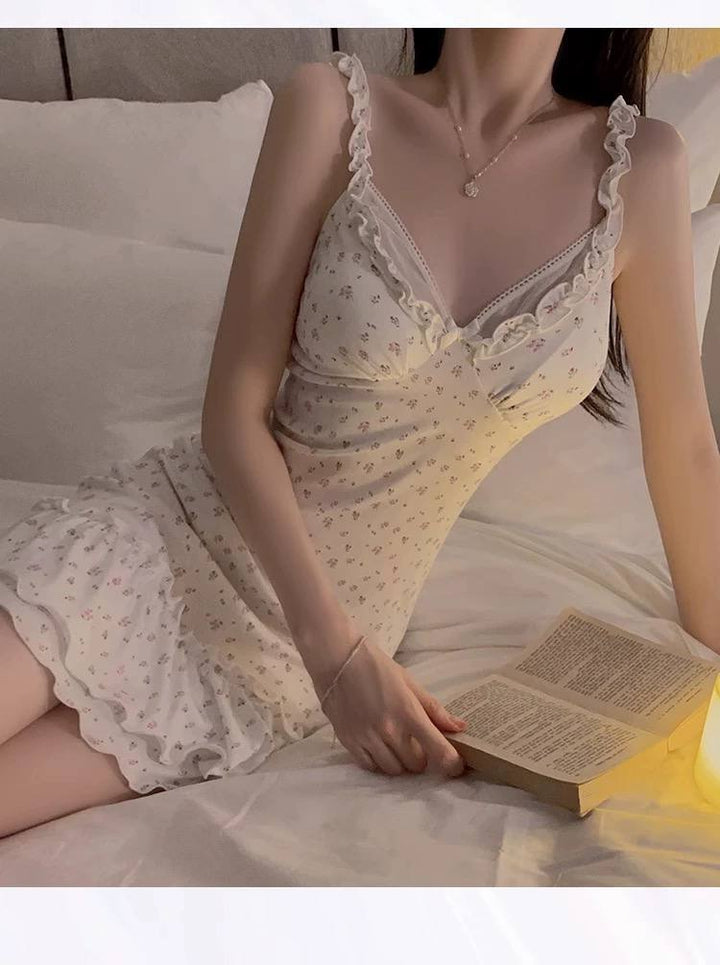 استمتعي بالراحة والجاذبية مع فستان Whispered Bloom، قطعة ناعمة بتفاصيل أنثوية رقيقة، مثالية لأمسياتك الهادئة أو صباحاتك الهادئة في المنزل.