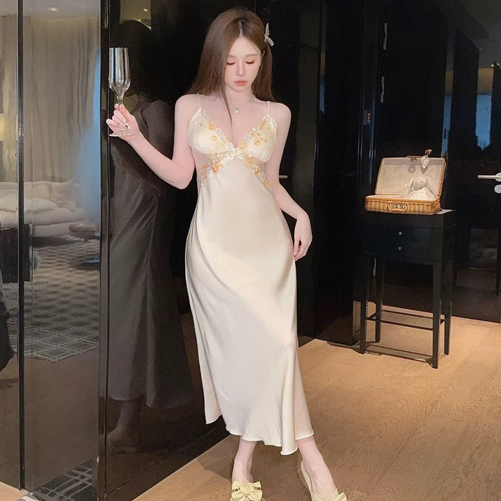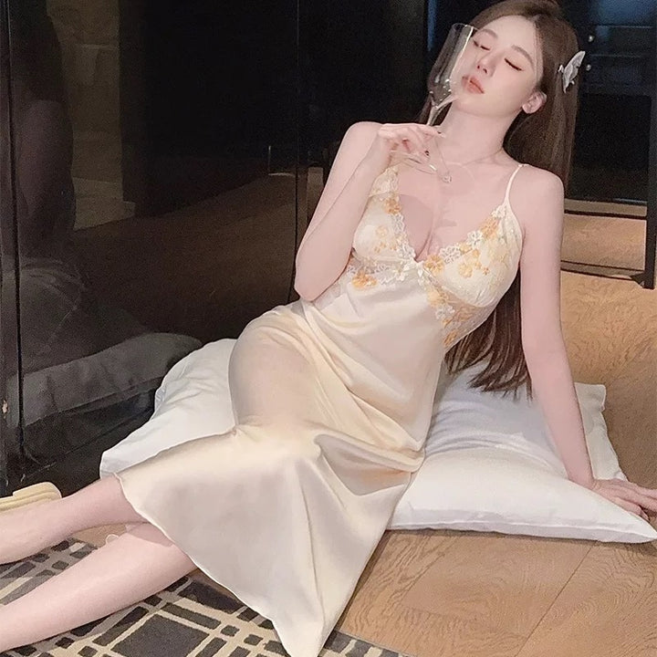 طقم نوم ساتان ناعم بتطريز ورد – نعومة تكمّل جمال